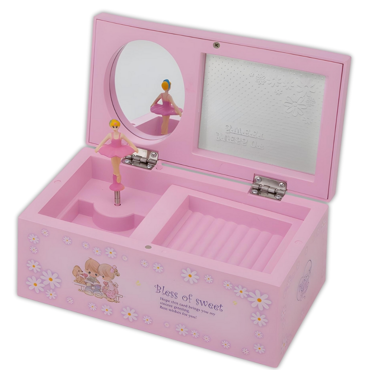 Organize suas joias e bijuterias com charme, praticidade e um toque musical! Esta linda caixinha é movida à corda e, ao girar, a delicada bailarina dança ao som da melodia. Além de funcional, a caixa é uma ótima opção de presente para amigos, familiares ou até para você mesma. Também pode ser usada como objeto de decoração em quartos, closets ou escritórios.