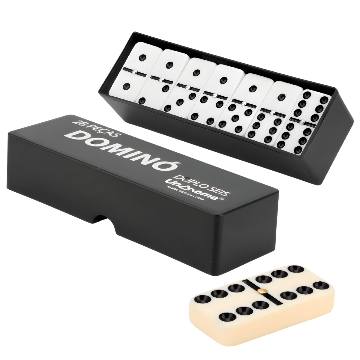 Este conjunto da Uny home é fabricado com peças de resina de alta qualidade, proporcionando resistência, durabilidade e um acabamento impecável. Com 28 peças, este modelo segue o padrão tradicional do dominó duplo seis, ideal para uso recreativo, pedagógico ou terapêutico.