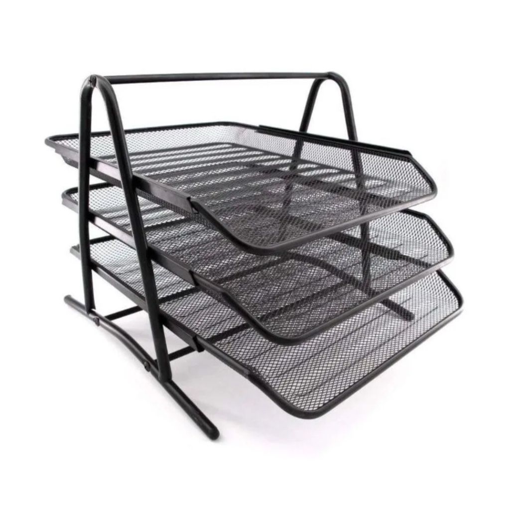 Organizador Triplo de Documentos de Metal Aramado Ideal para Mesa de Escritório: